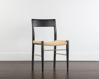 This modern take on a classic dining chair design offers timeless style for any space. Features a walnut stained beech timber wood frame with a natural rope seat.