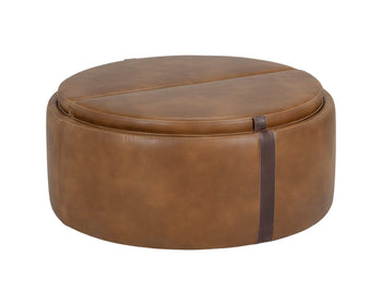 With a touch of retro influence, this modern wheeled storage ottoman will add form and function to any space. Features a handsome tobacco tan faux leather base with a contrasting autumn chestnut faux leather band. A convertible brown solid birch wood top completes this multi-purpose design. Also available in belfast heather grey fabric. Handle With Care: This design has been crafted with faux leather. Faux leather is manufactured to reflect the natural characteristics of leather; as such, markings, wrinkles, grooves, and light scratches are appreciated characteristics. No two pieces will be alike. Visit our Product Care page for more information on how to ensure the lasting beauty of this piece.