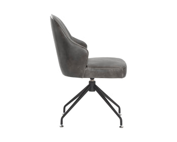 A handsome swivel dining chair designed for transitional and modern spaces. Features a curved seatback in tobacco tan and overcast grey faux leather with a black iron base. Handle With Care: This design has been crafted with faux leather. Faux leather is manufactured to reflect the natural characteristics of leather; as such, colour variations, markings wrinkles, grooves, and light scratches are appreciated characteristics. No two pieces will be alike. Visit our Product Care page for more information on how to ensure the lasting beauty of this piece.