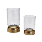 Two's Company Casablanca Set of 2 Hurricane with Brass Base- Recycled Aluminum/Glass