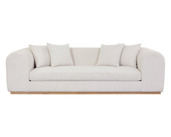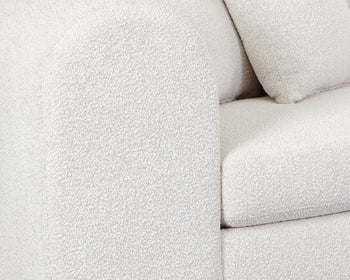 Rounded curves lend the Caspian Sofa a soothing silhouette. Upholstered in our stylish boucle copenhagen white fabric with generous proportions for ultimate comfort. A light oak wood base complements the contemporary style.
