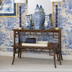 A generous serving tray offering a vibrant color palette for the gracious host, with metallic satin gold interlocking honeycomb pattern and gold pinstripe detail. Designed by Shayla Copas.