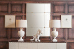 Greenwich Ceramic Lamp is a transitional white glazed Italian ceramic table lamp. An off-white linen drum shade gives an elegant touch and helps to create ample illumination throughout your space.