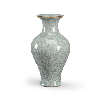 Enhance your tabletop with this celadon glazed porcelain vase. Roberson vase is a 15.5" decorative vase that features crackle glaze with metallic gold trim. Ideal for use as a stand alone accent or add a floral arrangement for an eye catching centerpiece in your living room, dining room or foyer.