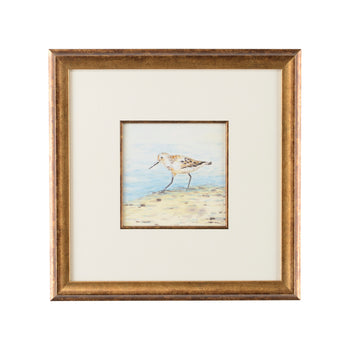 Sand Piper V - Watercolor, antique gold frame with glass, white mat, antique gold fillet. Hand painted. Lisa Kahn collection