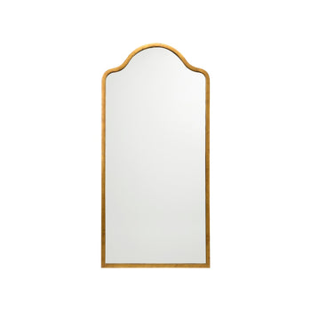 Add dimension and charm to your existing decor with our Scalloped Top Mirror. Finished in antique gold leaf, this 54" iron framed contemporary mirror is simple yet elegant. Hang over a console or chest in your living area to reflect light and make your space feel larger.