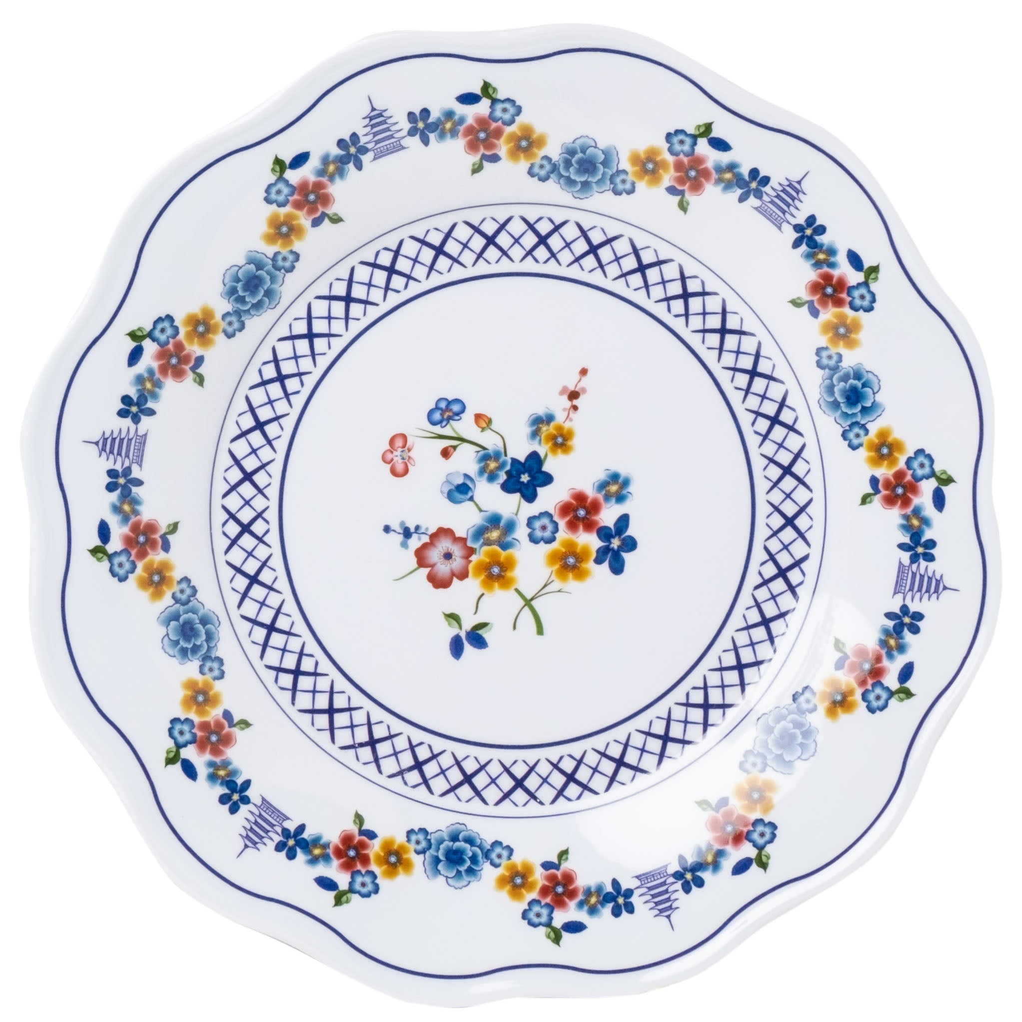 - Colorful Floral Melamine Collection: 4 Dinner Plates, 4 Salad Plates, 4 Soup / Cereal Bowls, 1 Serving Platter, 1 Serving Bowl