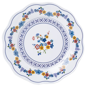 Dinner Plates (Set of 4): Elevate your main courses with these stunning dinner plates, adorned with colorful floral patterns. Each plate features a scalloped edge, adding an extra touch of sophistication to your table setting.