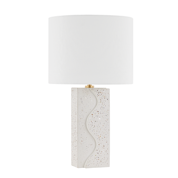 Waves own the moment, taking shape in the Cort Table Lamp. Armed with artful flair, Cort features a terrazzo ceramic base with undulating curves and aged brass hardware. Topped with a white linen shade.
