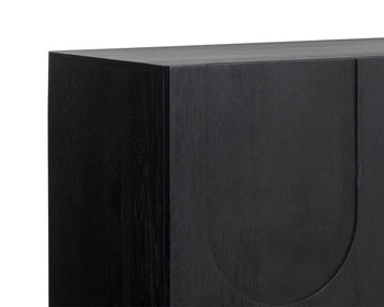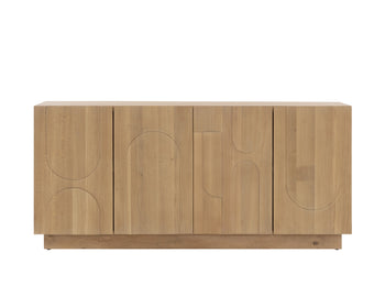 Taking cues from Scandinavian design, the Cove Sideboard is revitalized with beautiful wood patterning. Crafted from a brown solid oak wood frame in a rustic finish, and completed with four cabinets for ample storage space. Anti-tipping kit included. As wood is an organic, porous material, these pieces will contain natural variation of texture and may also exhibit fine indentations and cracks. Wood pieces will also display a disparity of colour and grain, and visible knots and burls that add to the character of each piece. Made in India. With refined craftsmanship, this design was brought to life by skilled local artisans. Due to the nature of handcraftsmanship, unique imperfections such as fissures, markings and variations in colour and shape are welcomed and appreciated characteristics for a truly one-of-a-kind piece.