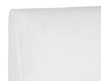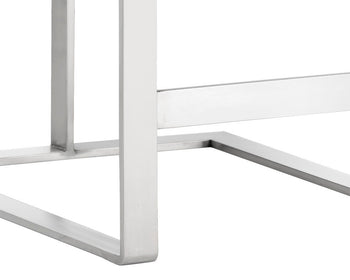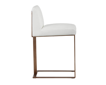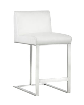 Stunning from all angles, this counter stool features an exposed brushed stainless steel frame with a footrest. A streamlined seat in cantina white, black and magnetite bonded leather completes the look. Perfect for restaurants, bars and residential spaces. Suitable for various dining, kitchen and bar spaces of all sizes. Handle with Care: This design has been crafted with bonded leather. Bonded leather is a blend of reconstituted leather and synthetic materials crafted to reflect the natural characteristics of leather; as such, colour variations, markings, wrinkles, grooves and light scratches are acceptable and appreciated characteristics. No two pieces are alike. Visit our Product Care page for more information on how to ensure the lasting beauty of this piece.