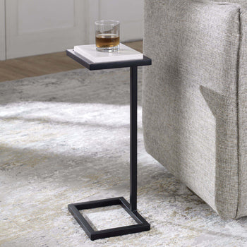 This elegantly designed martini table will be perfect beside your favorite chair. Finished in a satin black, it is topped with a thick white polished marble. Also available in an aged gold finish with black marble, W23013.