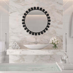 The simple and sleek inner frame allows the focus to be on the dome shaped ornaments. Finished in a matte black, this mirror will be a focal point in any room.
