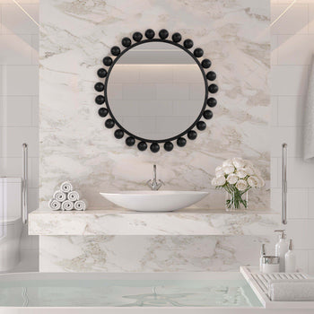 Make a statement with this 34 round metal mirror, surrounded by 2.5 hemispheres.