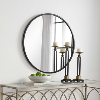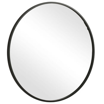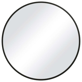 This 37 round mirror is framed in an attractive PVC frame for extra durability. With its matte black finish and clean modern style, it will complement almost any decor.
