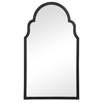 This beautiful shaped arch top frame will be a focal point of any room. Made of iron, it is finished in a satin black. Also available in silver leaf, W00495, and gold leaf, W00496.