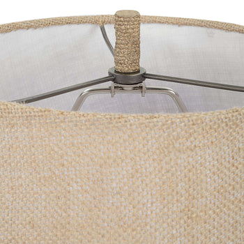 This unique, rustic table lamp is designed as a collection of antlers made of polyresin. Each antler is skillfully arranged and finished with a natural appearance of authenticity. A tapered round burlap shade completes the rustic look.