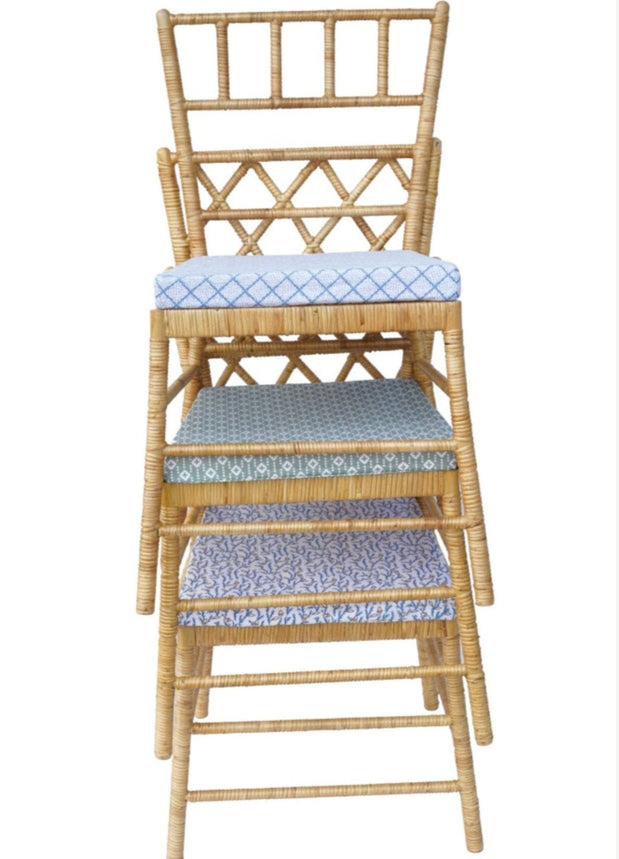Elevate your space with the luxurious Diamond Back Wicker Chair. Crafted with a stunning diamond back design, this chair exudes elegance and sophistication. Made with high-quality wicker, it offers both beauty and durability. Relax in style and comfort with this exquisite addition to your patio or garden. The chairs have a strong metal base and can hold up to 225 lbs! Beautiful removable cushion, with three cushion styles. Super stylish and perfect for your next gathering! Love that these can be stacked easily.