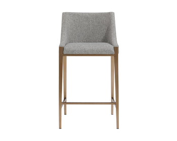 With its clean and modern design, this counter stool is a stunning addition to any dining or kitchen space. Stocked in our textured monument pebble fabric and completed with powder-coated stainless steel legs in an antique brass finish.