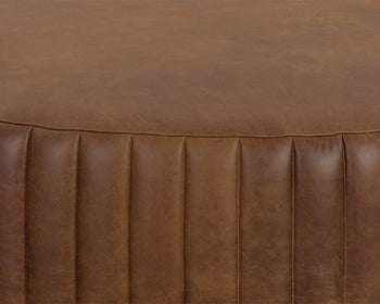 The Divano Ottoman is a versatile piece that adds a touch of comfort to any space. Features a simple round silhouette upholstered in our luxurious Lucia Tobacco Italian leather. Vertical channel tufting across the sides creates added dimension to the piece. Handle with Care: This design has been crafted with 100% aniline leather. Leather is a natural material; as such, colour variations, markings, wrinkles, grooves and light scratches are acceptable and appreciated characteristics. No two pieces are alike. Visit our Product Care page for more information on how to ensure the lasting beauty of this piece.