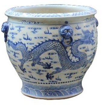 Beautiful Dragon Fishbowl Includes beautiful raised lion head detailing with "rings." Perfect for both indoor and outdoor settings, it's ideal for housing small trees or plants.