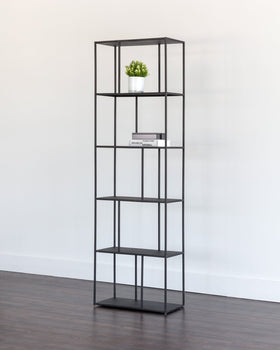 Add style and warmth to living and office spaces with this well-designed iron bookcase in a matte black finish. Can be placed in pairs or multiples for added impact and functionality. Anti-tipping kit included.