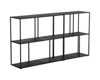 Add style and warmth to living and office spaces with this well-designed low bookcase in matte black iron. Can be placed in pairs or multiples for added impact and functionality. Anti-tipping kit included.