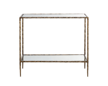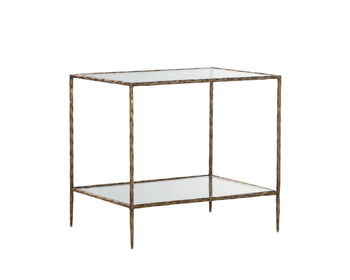 The Emine Nightstand shines a spotlight on the rustic beauty of hand-hammered metal. Crafted by artisans in India, this nightstand features an antique brass iron frame with a tempered glass top and shelf. Made in India. With refined craftsmanship, this design was brought to life by skilled local artisans. Due to the nature of handcraftsmanship, unique imperfections such as fissures, markings and variations in colour and shape are welcomed and appreciated characteristics for a truly one-of-a-kind piece.
