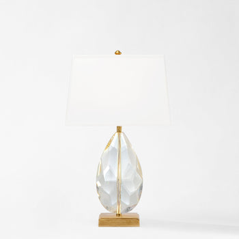 - High end crystal table lamp with antique brass trim