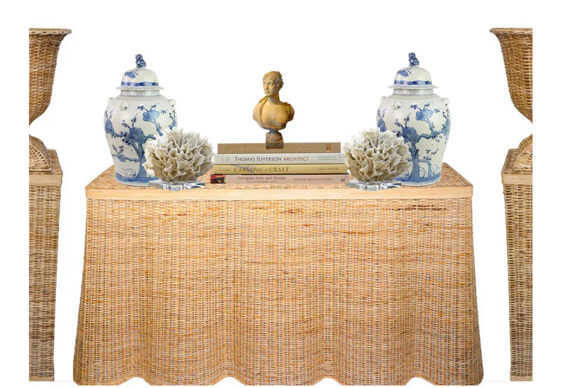 The Enchanted Home Extra Large Scalloped Wicker Console Table