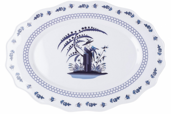 Serving Platter (Sold Individually): Impress your guests with this beautifully detailed serving platter, showcasing a scalloped edge and the collection’s intricate blue and white figurine pattern. Ideal for presenting appetizers, entrees, or desserts.