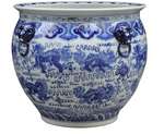 Beautifully painted foo dog design with gorgeous details, "lion rings". Perfect for both indoor and outdoor settings, it's ideal for housing small trees or plants.
