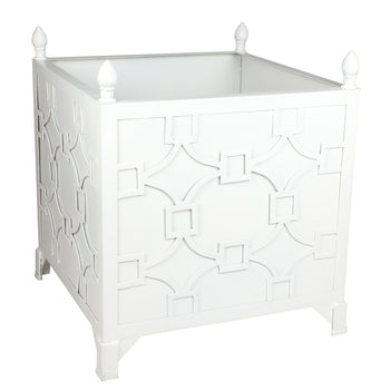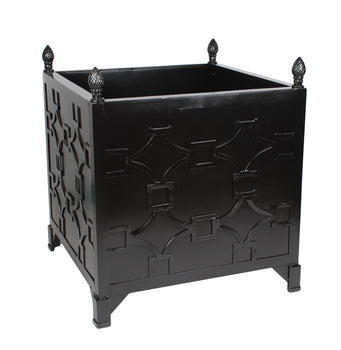 Enhance your outdoor space with our elegant metal planter featuring four drainage holes and decorative finials atop sturdy feet. Each planter is meticulously hand-painted with weatherproof outdoor paint. While our planters are coated with three layers of weather-resistant paint and a protective sealer, an additional sealant is recommended for prolonged protection against moisture and the elements.