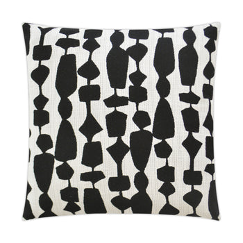 This Freya Pillow in Black features a bold large pattern with abstract shapes. It comes with an eggshell-colored back fabric. This pillow may be available as a lumbar pillow and may also come in: Black, Denim, and Stone.