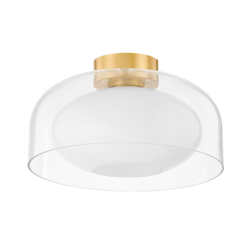 The Giovanna Flush Mount blends shape and material with beautiful simplicity. Available in aged brass, old bronze, and polished nickel canopy, which holds an opal glass shade within a clear glass dome. Dueling shades lend visual intrigue to the otherwise minimal design.