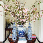 A truly grand ginger jar, exuding elegance at every turn. This impressive piece showcases a beautiful hand-painted antiqued scenery across its entire body, complemented by exquisite raised dots.