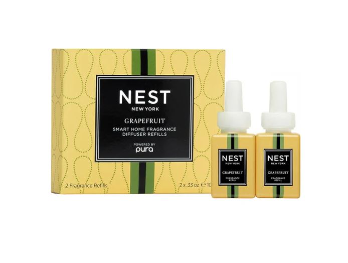 Uplift your senses with this bestselling fragrance, Grapefruit. This NEST x Pura Smart Home Fragrance Diffuser Refill Duo features the iconic scent’s exhilarating blend of pink pomelo grapefruit and watery green notes with lily of the valley and coriander blossom.