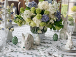 Add a whimsical touch to your décor with this charming green and white porcelain bunny. This bunny is perfect for adding a touch of playful elegance to your home.