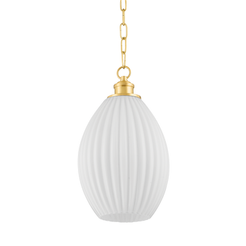 Hillary captures the cottage charm captivating the design world. The single light pendant, available in aged brass and old bronze features a fluted glass shade dangling elegantly from the chain. Stunning on its own, this antique darling proves better in pairs, layered in multiples over a kitchen island or dining scene. Also available in a smaller size.