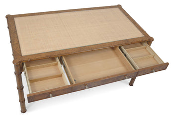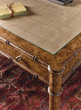 Woven cane top insert with protective glass writing surface