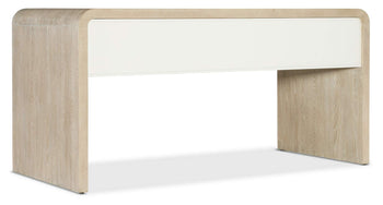 The Brixton Home Office Collection is a thoughtfully designed trio featuring elegant, curved waterfall silhouettes that give the collection a sleek and contemporary aesthetic. The two-tone finish pairs soft, elm veneers in a pebble hue with door and drawer fronts in a contrasting ivory with leathered texture.