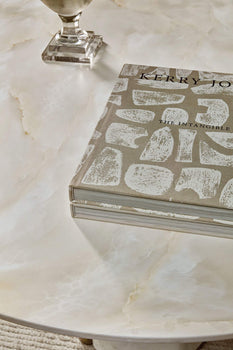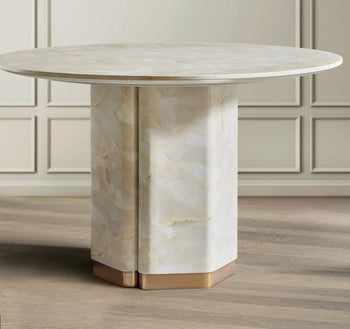 Finish: Faux Onyx finish created by water-transfer technique. Accent metal base features Sunlit Bronze finish.