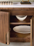 Two wood doors with inset hardware, soft-close hinges and magnetic catches