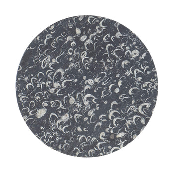 Naturally quarried black marble top with seashells imbedded within the stone