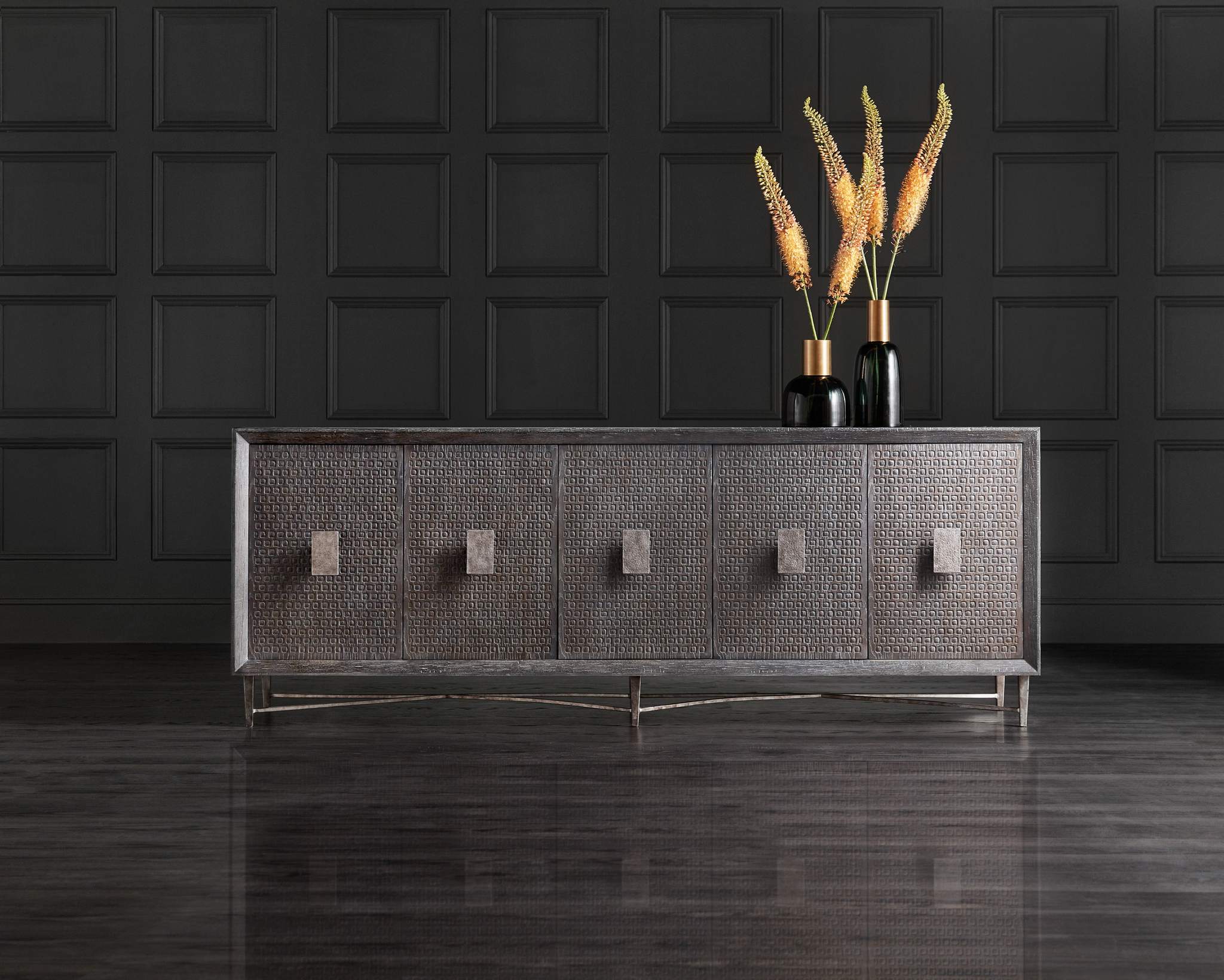 Hooker Furniture - Melange Keenan Five Door Credenza - Dark Wood - 628-85106-96
