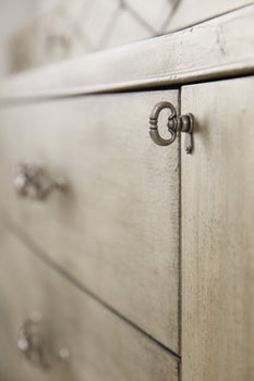 Channeling jet setting socialites from the golden age of Hollywood as its muse, Hooker Furniture is set to launches a major expansion to its popular Sanctuary collection. The bedroom, dining room, occasional and home office pieces are grouped into three unique new personas, each of which embody the influences of the iconic starlets whom left impressions of glamour, charm and class on American pop culture. From bold and dramatic to soft and romantic to a statement-making eclectic lifestyle, the three personas Collette, Anastasie and Diamant effortlessly bring to life a well-traveled socialite who has curated a collection of home furnishings in her metropolitan home that tell the story of her travels across the globe. Offering a more metropolitan style, Diamant has an eclectic attitude. Anchored by a silver finish with rich undertones of gold and champagne, the group is complemented by a bold, black accent finish, mirrored details, champagne metal finishes and a fresh white eglomise process, accented with silver tipping. Several pieces also include reverse hand painted glass that resemble the look of marble.