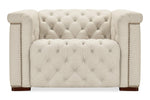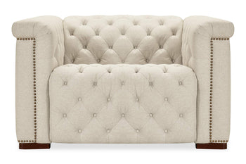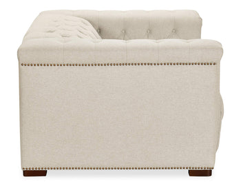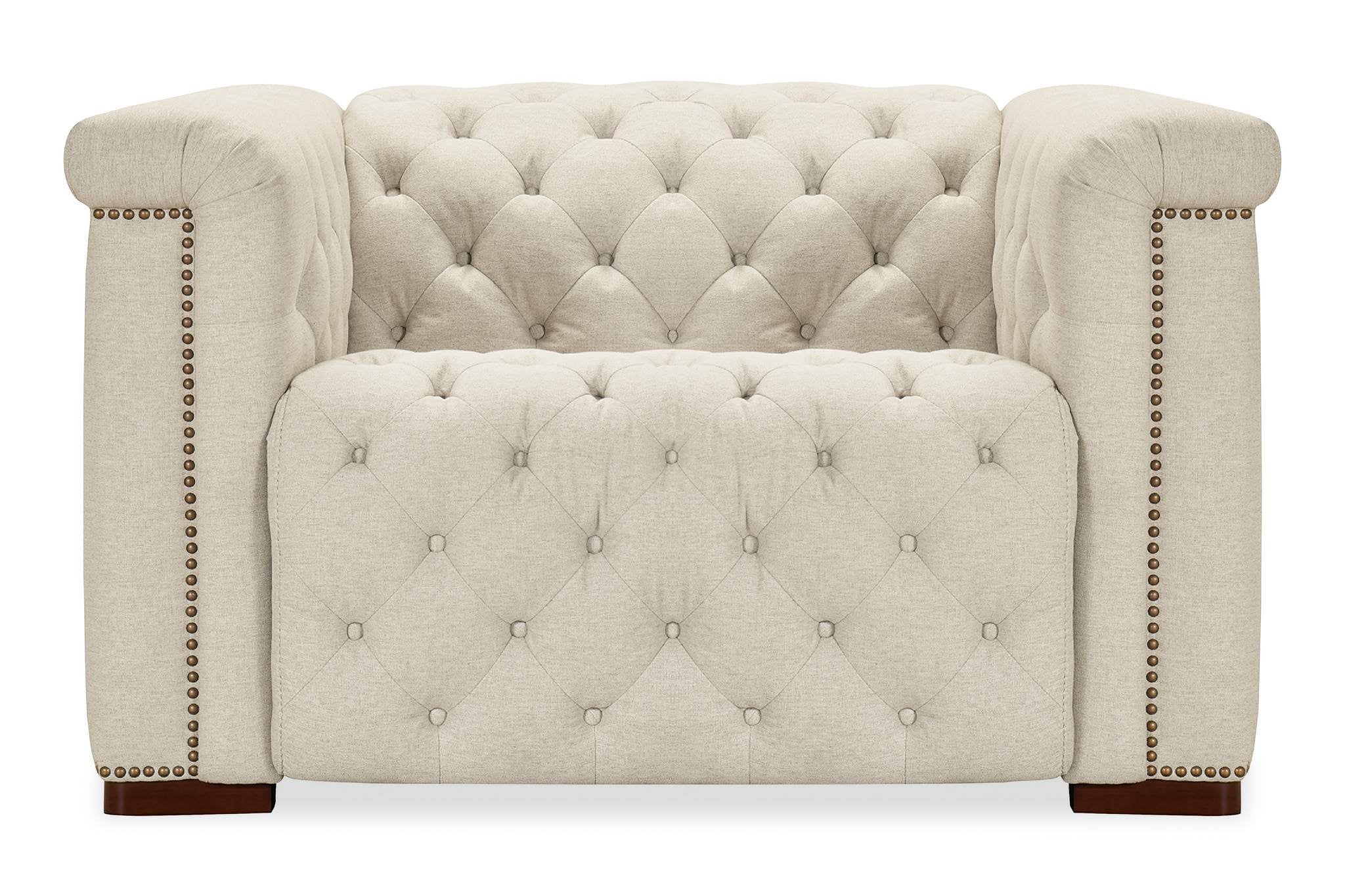 Classic chesterfield tufting with copper toned accent nail trim