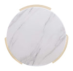 Finish: Polished Limestone finish on quartered oak veneers. The Volakas stone top showcases a natural blend of white, gray, and other organic tones for a unique, elegant finish.