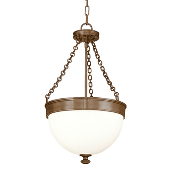 Barrington marries the smooth glow of opal glass with the classic look of a chain-hung suspension. The creamy layer of Barrington's opal shade diffuses sharp shadows, filling your space with evenly distributed ambient light. Cast metalwork holds the hemisphere of mouth-blown glass and mounts the fixture's three hanging chains. By removing the solitary chain section, Barrington converts from a pendant to a semi-flush mount.,Barrington marries the smooth glow of opal glass with the classic look of a chain-hung suspension. The creamy layer of Barrington's opal shade diffuses sharp shadows, filling your space with evenly distributed ambient light. Cast metalwork holds the hemisphere of mouth-blown glass and mounts the fixture's three hanging chains. By removing the solitary chain section, Barrington converts from a pendant to a semi-flush mount.