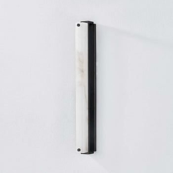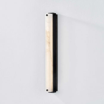 A modern ‘air lantern’ design with a bold architectural silhouette. In lieu of a central light source, LED strips are integrated into the cage of Edgemere itself. A rectangular panel of alabaster is attached to each arm, creating a geometric array of light within the piece. The sleek mixed materiality feels grand and traditional with a futuristic edge. Available in a 3 or 4-light pendant in Aged Brass or Aged Brass and Distressed Bronze or a single light sconce in Aged Brass or Distressed Bronze.